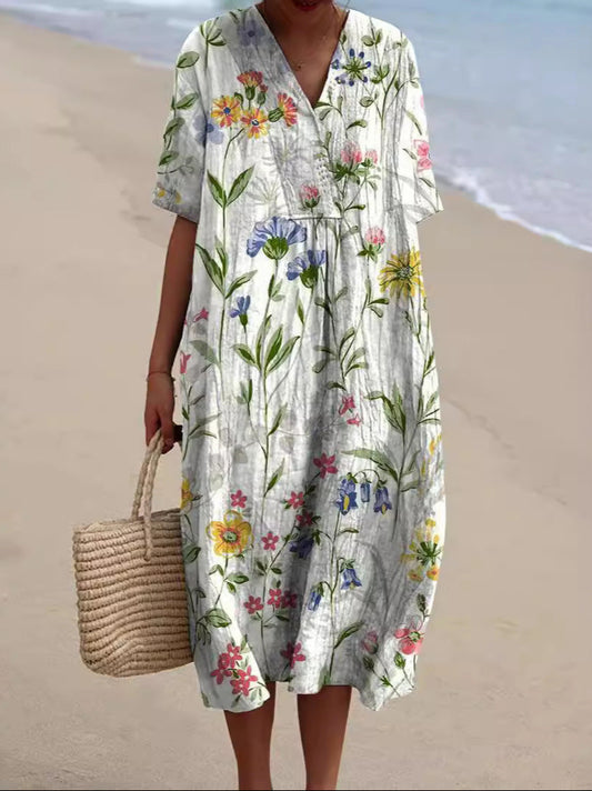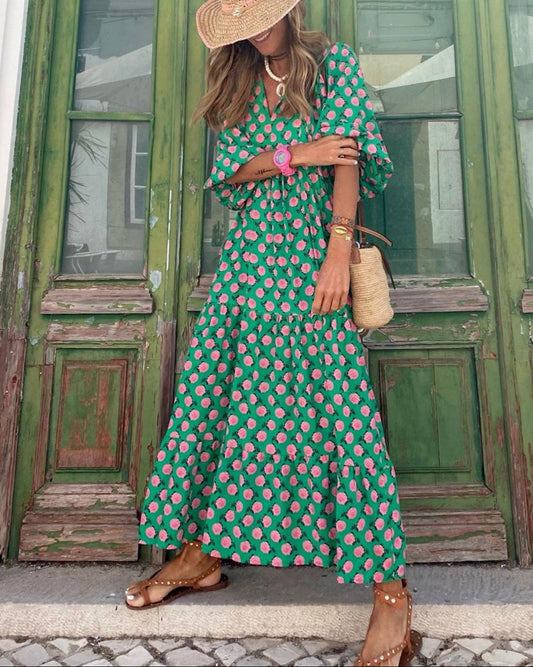 Vestito Lungo Bohemien con Scollo a V e Mezze Maniche – Perfetto per l'Autunno