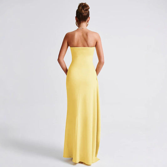 Abito Estivo da Donna con Top a Fascia e Vita Media in Giallo Chiaro