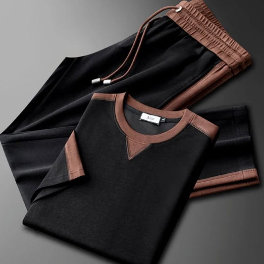 Set Lounge da Uomo con Maglia Girocollo a Contrasto e Pantaloni con Coulisse