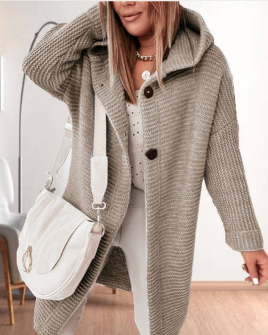 Giacca da Donna in Maglia con Cappuccio e Chiusura a Bottoni