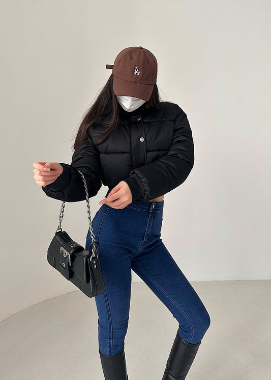 Giacca Crop Puffer Invernale Donna Tessuto Spesso Vita Alta Maniche a Sbuffo