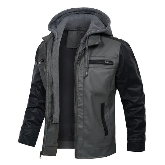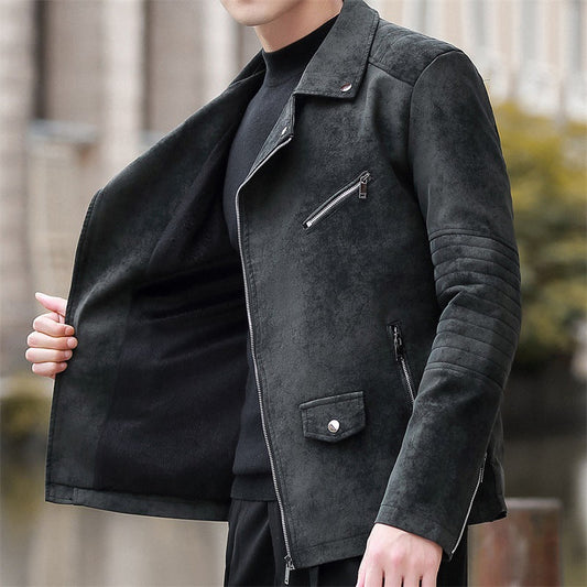 Uomo Autunno Giacca in Pelle PU con Fodera in Velluto Collo Giacca e Orlo Dritto