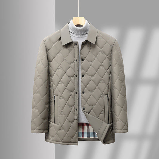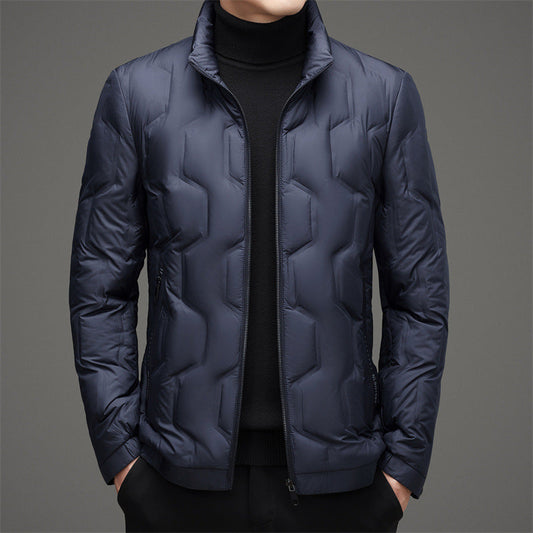 Uomo Inverno Giacca Pesante Imbottita in Piuma d'Anatra con Collo alla Coreana e Vestibilità Regolare