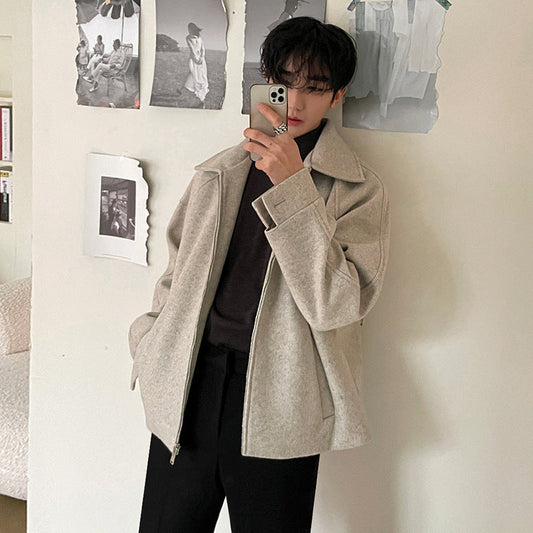 Uomo Autunno Giacca Corta Spessa Lana Mista Fit Largo Tasconi Laterali