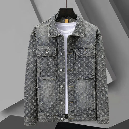 Giacca in Denim da Uomo con Motivo Jacquard e Taglio Sartoriale