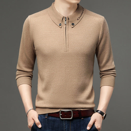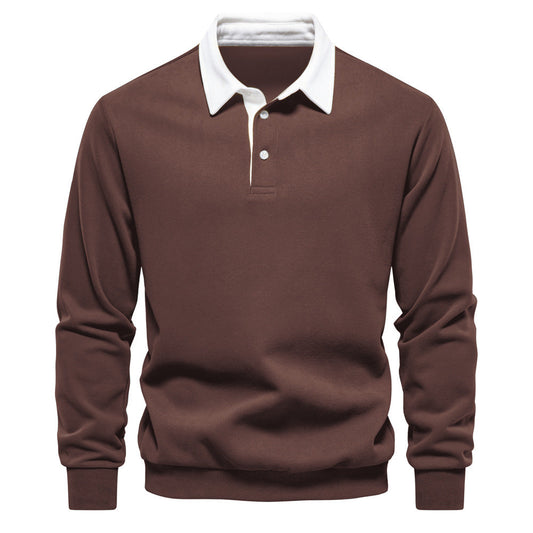 Uomo Maglia a Maniche Lunghe con Collo Polo e Flip Neck Autunnale