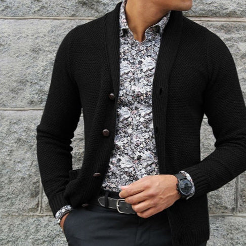 Cardigan Uomo Autunnale Maglia Spessa con Risvolto Jacquard Intrecciato