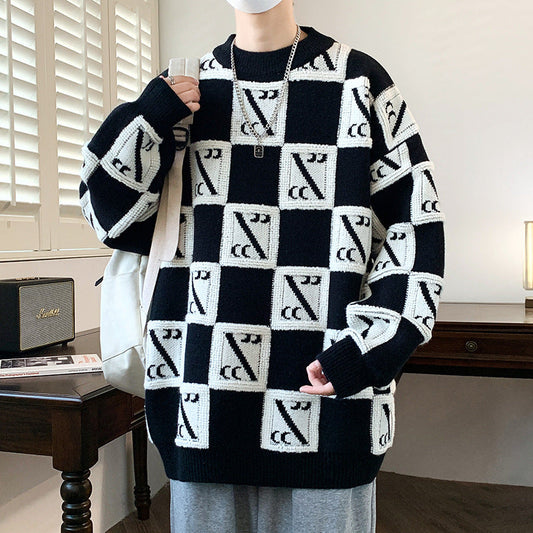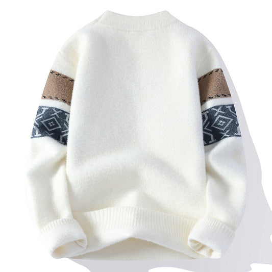 Uomo Pullover Invernale Maglione Jacquard Aderente con Scollo Tondo Contrastante - Edizione Invernale 2023