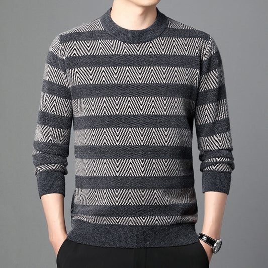 Uomo Maglione Autunno Pullover Fodera in Pile Collo Tondo Righe
