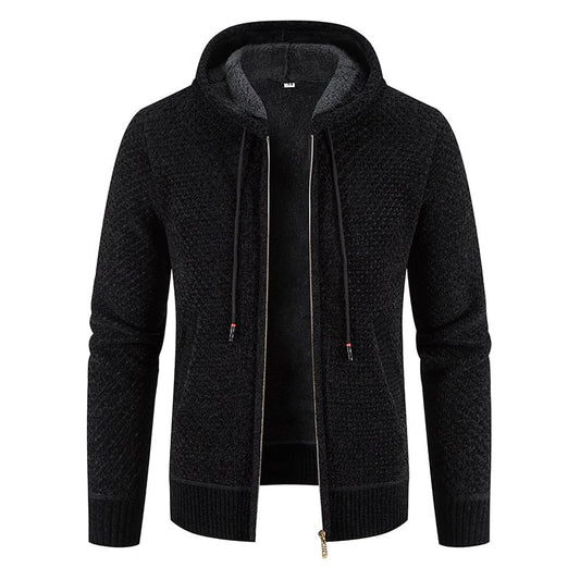 Cardigan Uomo Autunnale con Cappuccio Foderato in Pelliccia e Interno in Velluto | Zip Frontale a Manica Lunga