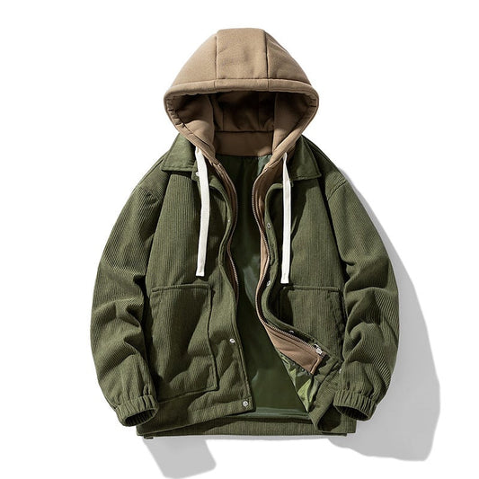 Felpa con Cappuccio in Corduroy per Uomo – Design a Righe Autunnali, Tasche Laterali, Taglio Largo