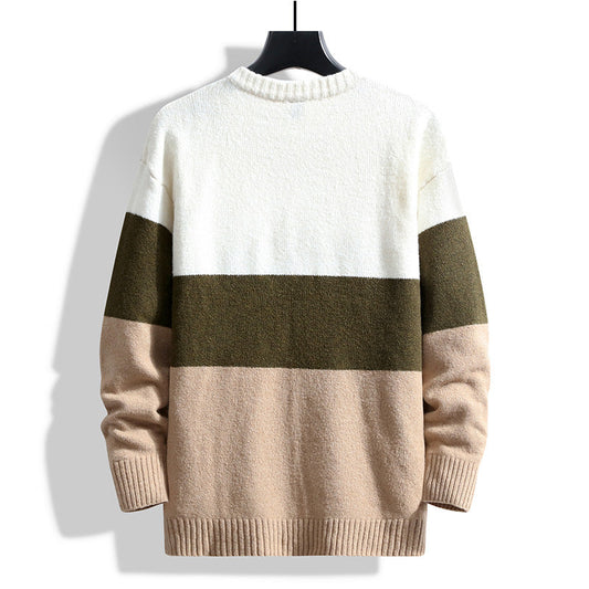 Maglione da Uomo a Girocollo a Manica Lunga con Colore a Contrasto