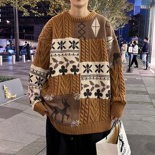 Maglione da Uomo Pullover con Girocollo e Design Jacquard a Contrasto