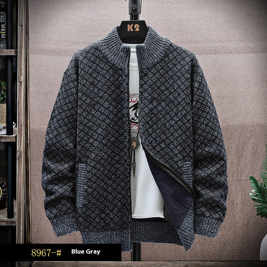 Cardigan Invernale da Uomo con Colletto Alto e Motivo Intrecciato