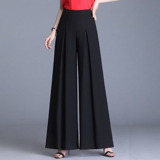 Pantaloni a pieghe da donna con gamba ampia e vita alta per l'inverno
