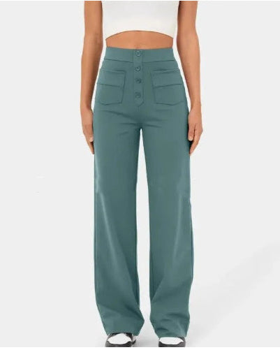 Pantaloni Donna a Vita Alta con Bottone Frontale e Tasche Laterali Autunnali