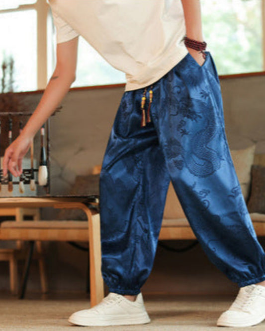 Pantaloni Harem Uomo Stampa Dragone Vita Media con Coulisse Gamba Ristretta