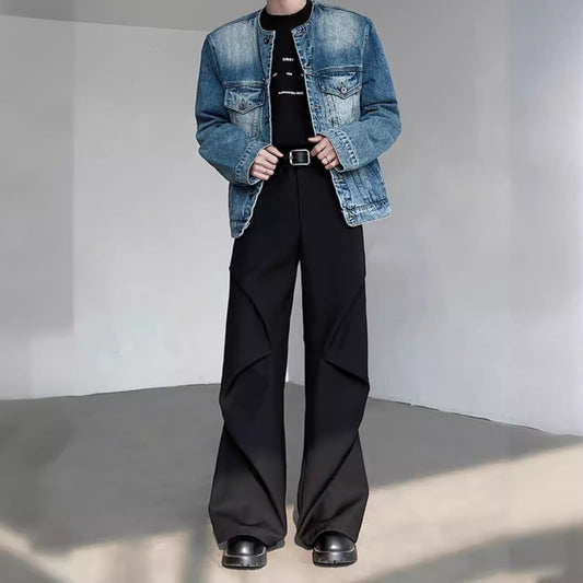 Pantaloni Uomini A Vita Alta Largo Dritto Ideale Per L'Autunno