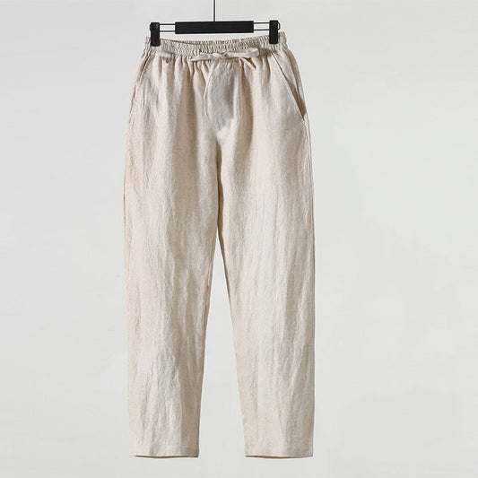 Pantaloni Uomo Crop In Lino E Cotone – Vita Bassa Gamba Dritta