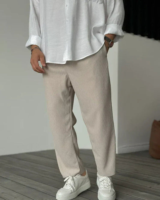 Pantaloni Uomo in Cotone Lino Rigati con Cordino Ideali per l'Autunno