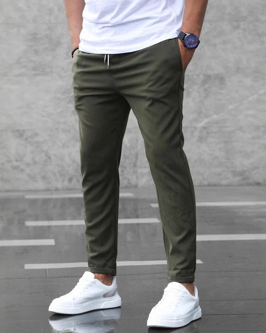 Pantaloni Uomo Slim Fit Vita Media con Lacci Tasche Autunnali Colorati Unici