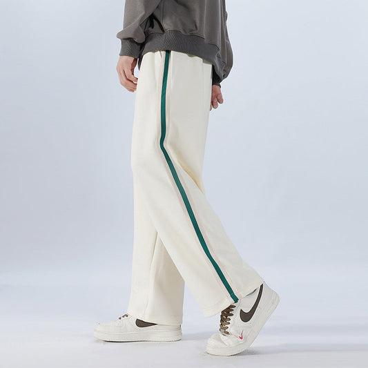 Pantaloni Uomo Autunno Mezza Vita Gamba Dritta Righe Lunghe con Cordino