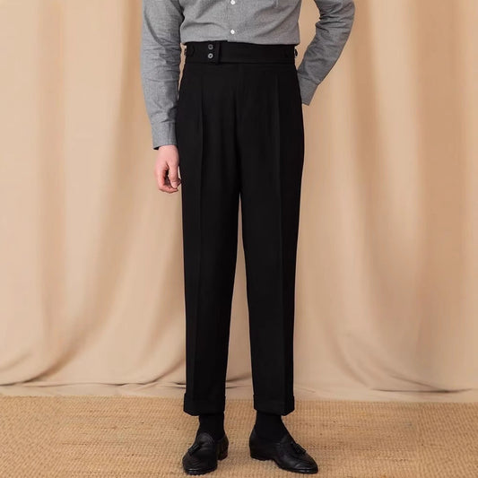 Pantaloni Uomo Autunno Vita Alta Gamba Dritta con Chiusura Lampo