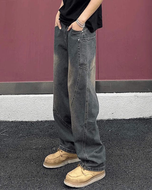 Uomini Jeans Dritti Con Vita Media E Scuro Autunnali