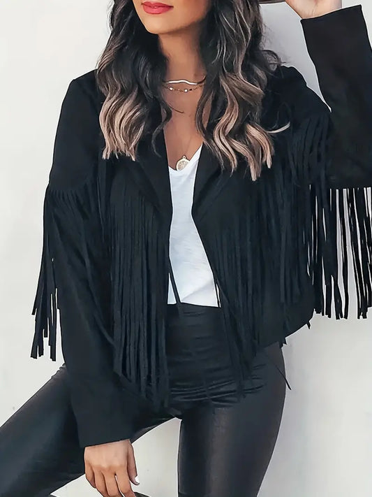 Giacca in similpelle scamosciata con frange decorative | Perfetta per l'autunno