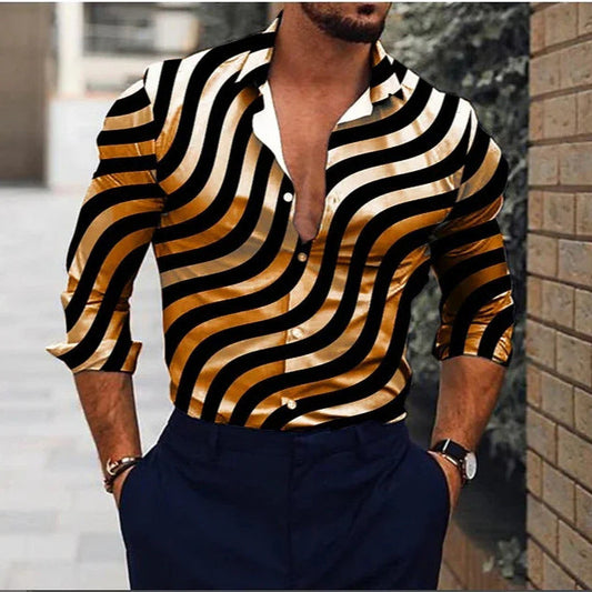 Camicia Primaverile da Uomo a Righe con Maniche Lunghe e Vestibilità Ampia in Stile Pullover