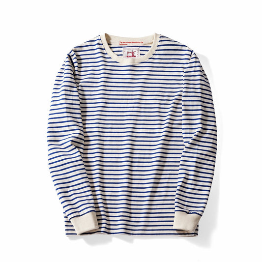 Maglietta da Uomo a Righe con Maniche Lunghe e Girocollo