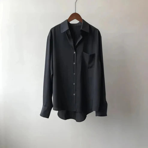 Camicia Blusa da Donna con Taglio Sartoriale e Drappeggio Fluido