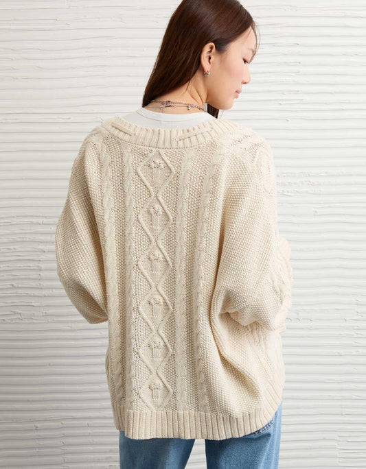 Cardigan da Donna a Treccia con Apertura Frontale e Orlo a Coste