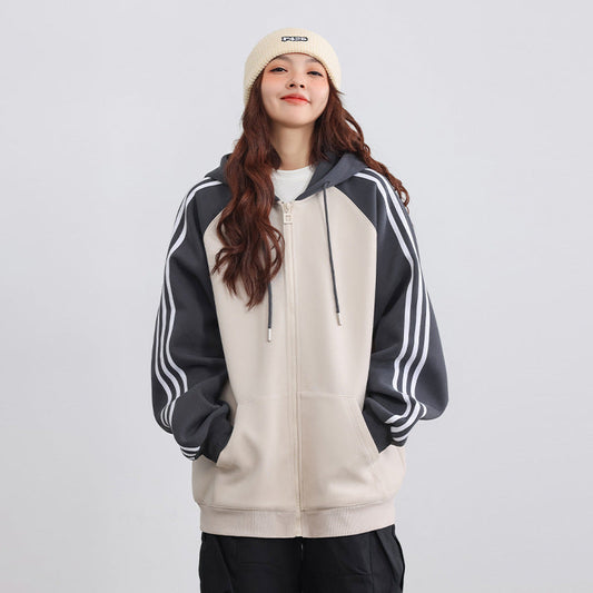 Cardigan con Cappuccio a Contrasto Retro Americano con Zip per Donne | Perfetto per la Stagione Autunnale e Invernale