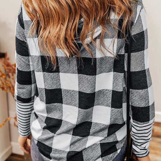Felpa Con Cappuccio A Quadri Con Maniche Regolari Perfetta Per L'Autunno