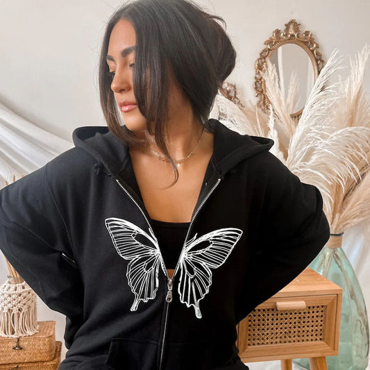 Felpa con Cappuccio a Stampa Farfalla e Maniche Lunghe | Perfetta per l'Autunno e l'Inverno