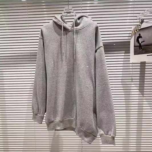 Pullover Con Cappuccio Donna Largo Con Strass - Ideale per la Stagione Autunnale e Invernale