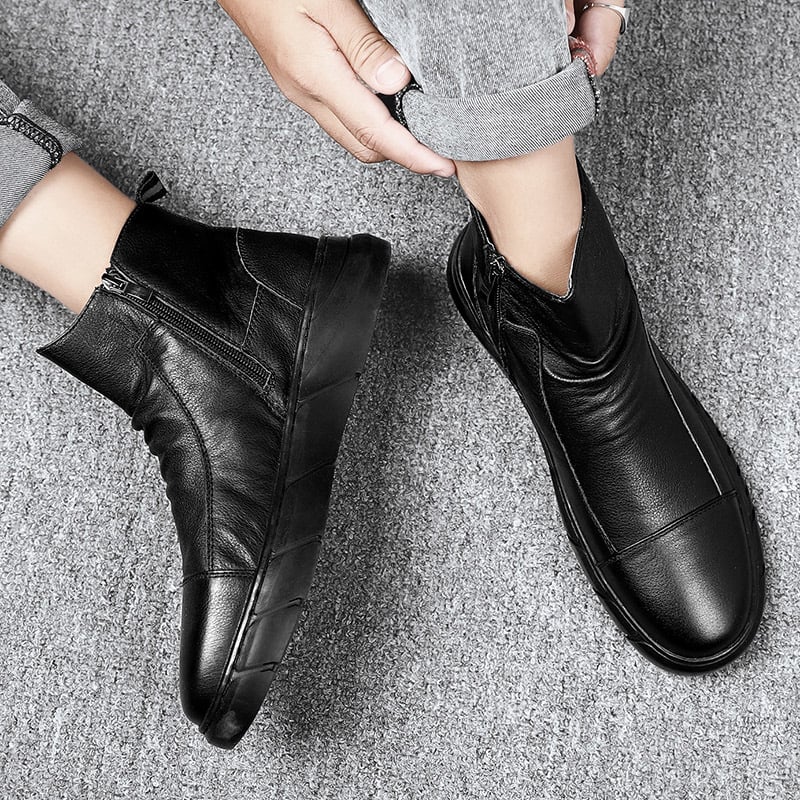 These men's high shaft winter snow boots are designed to provide insulation and reliability during cold weather conditions. The warm lining helps retain heat, while the durable sole ensures secure traction on various surfaces. Made with a low wedge heel and reinforced stitching, they combine stability and seasonal practicality.