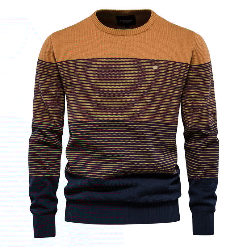 Questo maglione da uomo è progettato con girocollo e vestibilità slim, offrendo una silhouette pulita e moderna. Le maniche lunghe garantiscono una copertura completa, mentre il design a colore a contrasto crea un effetto visivo distintivo. Disponibile in diverse varianti di colore, può essere abbinato a vari outfit per il tempo libero o per l’uso quotidiano.