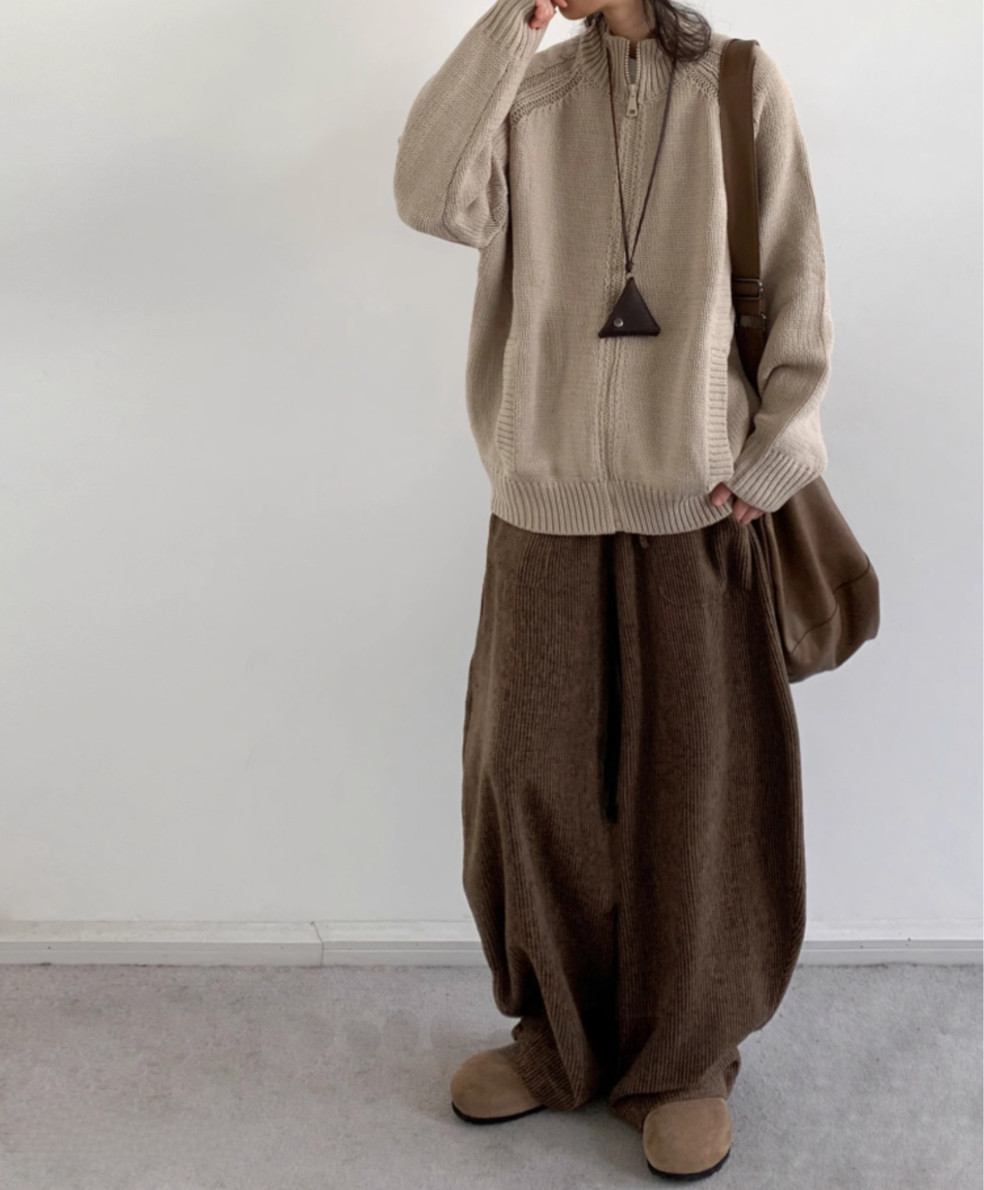Questi pantaloni lounge da donna presentano una gamba larga in velluto a coste con un drappeggio naturale e una silhouette strutturata adatta all’uso quotidiano. La vita regolabile con coulisse garantisce una vestibilità sicura, mentre il volume delle gambe crea una forma rilassata che favorisce il movimento naturale. Le pieghe profonde e la caduta morbida fino alla caviglia conferiscono equilibrio al design, ideale da abbinare a top aderenti o strati esterni. Disponibili in tonalità discrete, offrono una scelta pratica e versatile senza aggiungere ingombro.