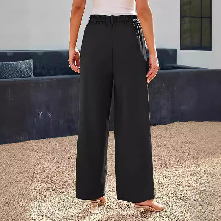 Questi pantaloni formali da donna a gamba ampia presentano un design a vita alta con una silhouette pulita e strutturata, perfetta per contesti lavorativi o occasioni formali. La cintura elasticizzata garantisce una vestibilità sicura e confortevole, mentre il tessuto non elasticizzato mantiene la forma e la struttura durante l’uso. Con il taglio a lunghezza intera e la finitura sartoriale, questi pantaloni offrono un look equilibrato e professionale, ideale per ufficio o eventi.